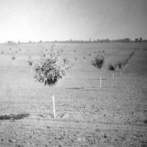 From the 1870s through the 1960s, the Dewey family orchard grew almonds and cotton, along with oranges, olives, grapes, cherries, watermelons, and wheat. This orchard was located at the corner of present-day streets Winding Way and Dewey Drive.