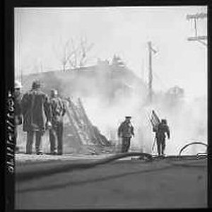 1955 - Fire at Arata Bros Market. Firemen mopping up. 4 of 5