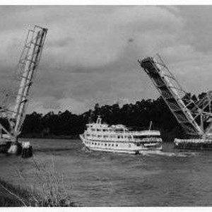 Image / A riverboat crossing beneath the drawbridge at Isleton