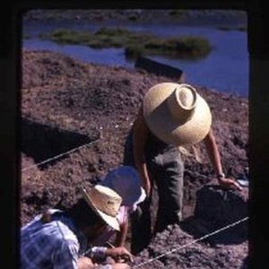 Slide of unidentified archaeologists working at dig at Bolinas Bay