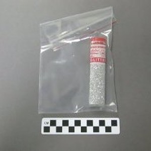 Tube, metallic silver-colored glitter, "Woolworth" brand, 4-1/2 in L, c.1950s