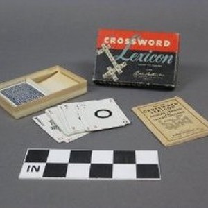"Crossword Lexicon" maker - Parker Brothers, copyright 1937. Contains deck of game cards and rules in original box. Box us red and black with white and gray lettering.