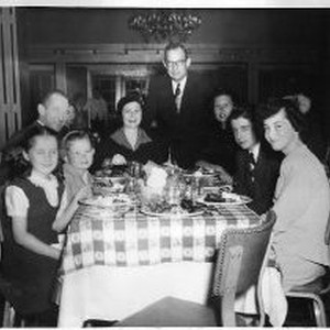 Souvenir photograph of Pat Cavanaugh and family at Hotel El Rancho, Sacramento, California.