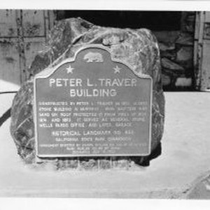 View of the plaque for the Peter L. Traver Building in Murphys, California State Landmark #4666 Calaveras County
