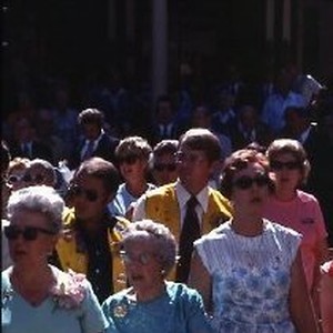 Old Sacramento. View of the Old School House Museum on the west side of Front at L Streets. This view is during the dedication of the museum