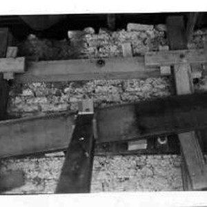 Photographs from Petaluma Adobe Report. Close-up of restoration work bracing.