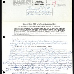 Chicago School of Nursing general examination [1], for Beatrice S. Lott, [s.d.]. [Description English/roman)]