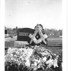 Photo -black and white: The gravesite of George Emerson Rosebrook, December 1933 at the Masonic Cemetery (currently Sebastopol Memorial Lawn) in Sebastopol. George was husband to Leta and father to Charlotte and Marilyn Rosebrook.