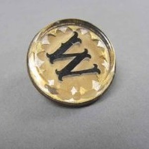 Round button with "W" emblem on gold-colored background.