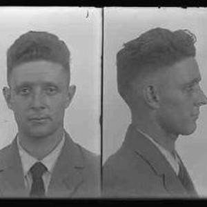 A police type "mug" shot of a young man; front and side views of his head on the same image.