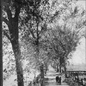 Print, 4.5" x 6.5"; mounted 6.75" x 8.75". Two unidentified boys and a dog standing in a country lane. Not dated.