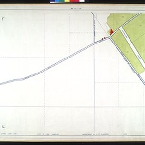 WPA Land use survey map for the City of Los Angeles, book 5 (Santa Monica Mountains from Girard to Van Nuys District), sheet 10. Includes: [Title page and] legend [for Book] no. V Composite index to Land use map books [for Book 5] Index to Book no. 5. Land use survey - City of Los Angeles. Department of City Planning. These maps were prepared with the assistance of the Works Progress Administration project no. 665-07-G-226 through 1939 to 1940. The land use data contained herein was compiled from a survey made with the assistance of the Civil Works Administration project no. 642, State Emergency Relief Administration project nos. 1-F2-318 and 1-F2-318A and Works Progress Administration project nos. 65-3-4377, 1101-2011 and 465-03-3-106. This survey functioned from Dec. 18, 1933 to May 8, 1939 and covers approximately 460 square miles within the boundary of the City of Los Angeles. It includes 347 colored drawings bound in 10 volumes of which this is no. V. The land use survey was supervised by the Zoning Engineer. The land use maps were supervised by the Illustrative Planning Engineer for the Sponsoring Department.
