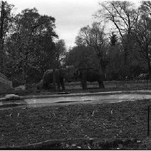 SERIES. Two elephants in outdoor exhibit at the Detroit Zoo.