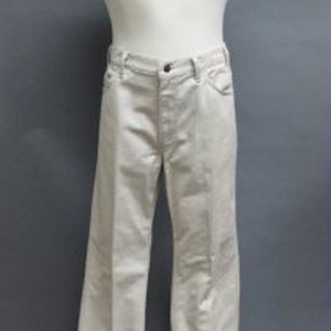 Pants, tan/kakhi cotton (possibly cotton/synthetic blend); western style with overstitching. Label "Levi's Sta-Prest NeverNeedsIroning"; hand-written in ink on inside lining of pocket: "W 38 L 30/Fit As Is #I/Joe Sun (a local clothing store) l3 Aug 85."