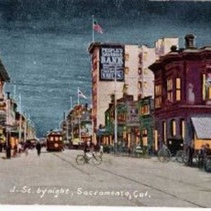 Postcard, J St. by Night, Sacramento.