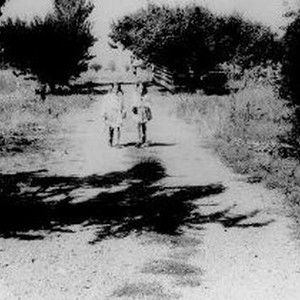 Two young girls walking down a dirt road.