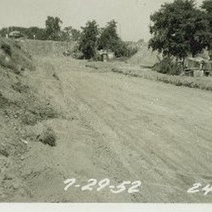 SERIES - Eight views identified as the Elvas Underpass site at B Street; shows the American Riverthe railroad track enbankment and worked site.
