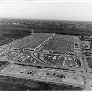 Aerial view of the supply area at McClellan Air Force Base including warehouses and parking lots.