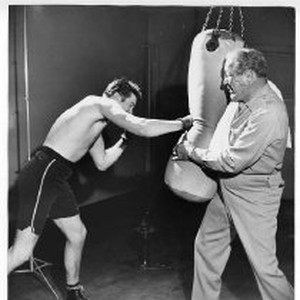 The two Baers and punching bag. Max Baer Jr, and Max Baer Sr.