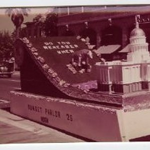 View of Admission Day Parade in Sacramento, Sept. 9, 1958. This view shows the float for the Native Sons of the Golden West, Sunset Parlor #26