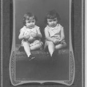 Photo--black and white, in studio folder: Studio portrait of two unidentified boys, possibly twins. Circa 1920. Decker & Decker Studio, Petaluma Ca.