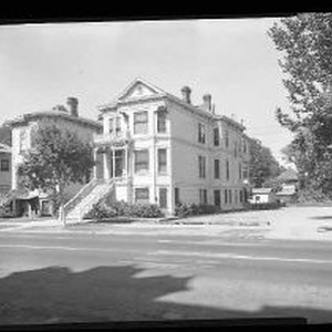 Street scene on the north side of H Street looking north at 811 H Street, an apartment building.