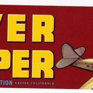 Crate Lug Label. Silver Clipper Brand, Grown and Packed by Exeter Fruit Association, Exeter, California. Image of Clipper airplane.