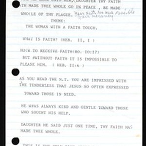 Typescript of a sermon "The woman with a faith touch”, [s.d.] [Description English/roman)]