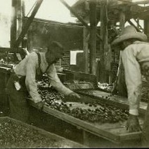 View of workers dipping prunes on the F.H. Holmes Ranch in Berryessa, Ca.
