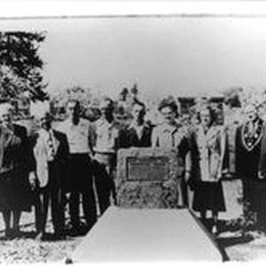 Photo--black and white:Pioneer Memorial Grove dedication 1949 by Soroptimist Club of Sebastopol at Ives Park. Dedicated to the Pioneers of Western Sonoma County. W.S.(Bill) Borba 3rd from left.
