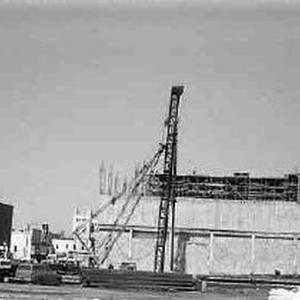 Ongoing construction of Macy's department store. Also seen in image, Sacramento Savings Bank, Lincoln Theater, and the Tower Bridge.