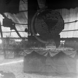 Photo--black and white, from Borba 8" x 10" celluloid negative: Gravenstein Apple Show Forestville display of the world globe made of apples. about 1930.