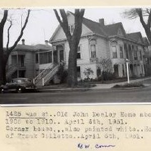 Typed on binder page "1425 Que st.. Old John Deeley Home about 1905 to 1910..April 6th, 1951. Corner house..also painted white..Home of Frank Gillette..April 6th, 1951.
