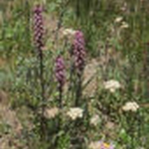 Three long stems with clusters of pink flowers. Photograph was taken at an elevation of approximately 12,095 feet.