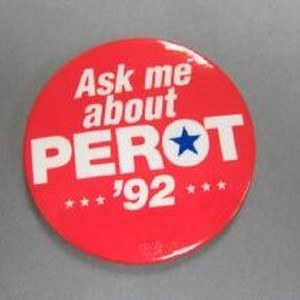 White text on red background. "Ask me about Perot '92"