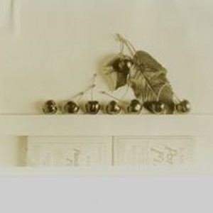 Photo, black and white: A display of Luther Burbank cherries identified as "Meaty" H-8.