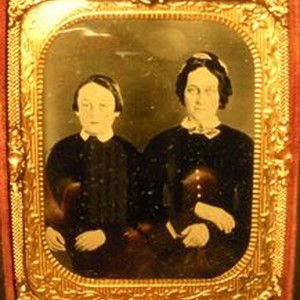 Daguerreotype--black and white: Framed daguerreotype of a young boy and woman who are unidentified members of the Swain family of Sebastopol. Circa 1850s