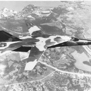 Aerial photo of a camouflaged F-111A