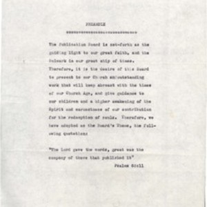 Publication Board Preamble for the Church of God in Christ, ca. 1953. [Description English/roman)]