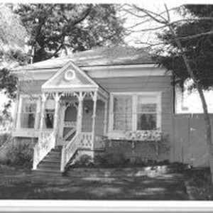 Photo, black and white: Sebastopol house at 331 Florence Avenue, a hip roof cottage, built in 1905. House photographed in 1993 by Evelyn McClure for her book "Sebastopol, California : History, Homes and People."