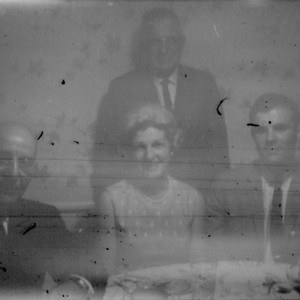 Leon Peters seated at a table with an unidentified woman and two unidentified men