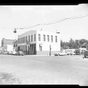 Street scene on the southeast corner of 2nd Street and L Streets showing Cafe de Paris on the corner at 200 L Street. Jalisco Cafe is at 204 L Street and South of the Border Cafe is at 214. On the far right of the image is Murphy's Seaside Service Station on 2nd Street.