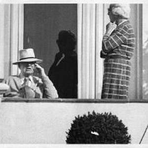 Edwin Bedell and unknown woman standing on balcony