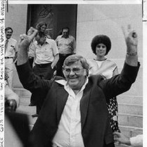 Image / William Craib, President of California State Employee's Association signals victory as he …
