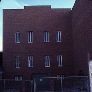 Old Sacramento. View of the Pacific Stables building on the corner of Second and L Streets. This view is of the back of the building at completion