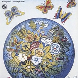 A poster dedicated to 1975 Plants Protection International Exhibition in Moscow, USSR. Captions read, "Zashchita rastenii '75. Mezhdunarodnaia vystavka Sovestkii razdel Moskva, VDNH, SSSR. 20 avgusta - 2 sentiabria 1975 g. / Защита растений '75. Международная выставка. Советский раздел. Москва, ВДНХ, СССР. 20 августа - 2 сентября 1975 г.", meaning, "1975 Plants Protection International Exhibit. Soviet section. Moscow, VDNH, USSR. August 20th through September 2, 1975". [Description English/roman)]