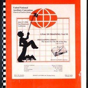 United National Auxiliary Convention, Church of God in Christ (COGIC), syllabus, "UNAC in training, vo. VI", San Francisco, California, 1990 July 2-7. [Description English/roman)]