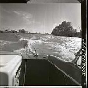 ca. 1950 "Summer Fun" Fishing - shows wake from boat. 1 of 2