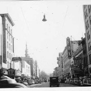 9th and K Streets, looking east, with the Hotel Sequoia on the left and the Fox Senator Theatre on the right.