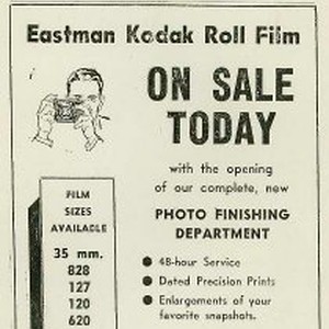 Negative of a McCurry advertisement promoting the opening of their new Photo Finishing Department.
